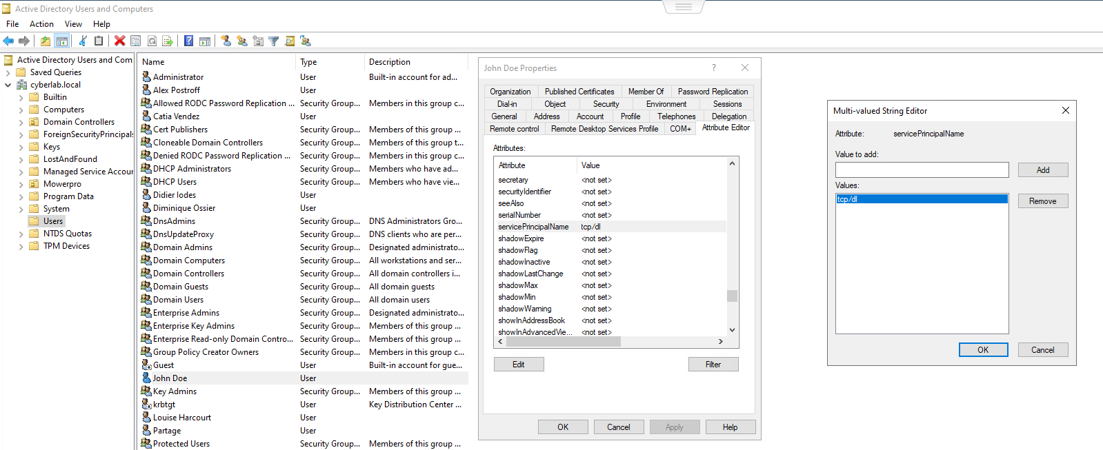 On peut ensuite venir dans l'onglet Editeur d'attributs pour chaque utilisateur concerné et ainsi supprimer les SPNs associés.