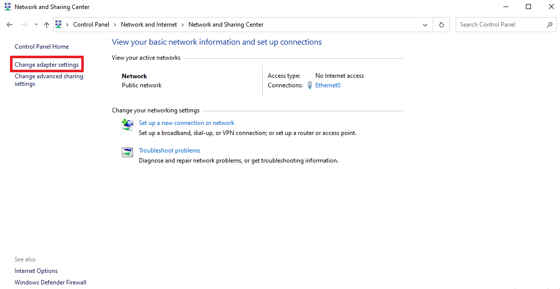 Accédez au "Centre Réseau et partage" et cliquez sur "Modifier les paramètres de l'adaptateur".
