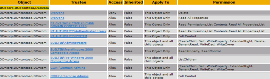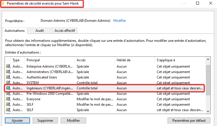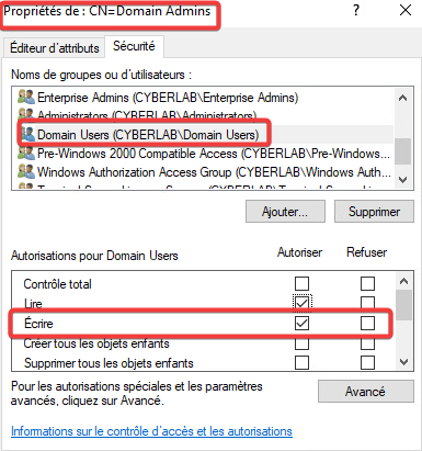 Il est déconseillé d'utiliser les groupes intégrés hérités dans Active Directory. Ils ont été créés en 2003, à une époque où la sécurité n'était pas une préoccupation majeure. Des groupes tels que Opérateur de comptes, Opérateur de sauvegarde, Opérateur de sauvegarde et Opérateur d'impression disposent de droits plus étendus que nécessaire, ce qui peut permettre une élévation des privilèges vers un administrateur de domaine.