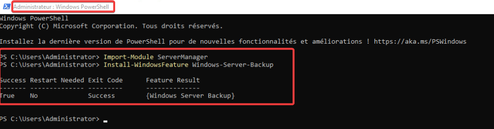 Ouvrir Sauvegarde Windows Server (Windows Server Backup);