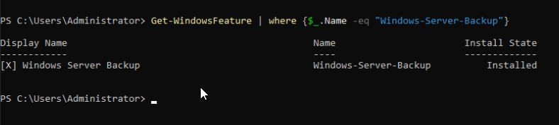 Get-WindowsFeature | where {$_.Name -eq "Windows-Server-Backup"}