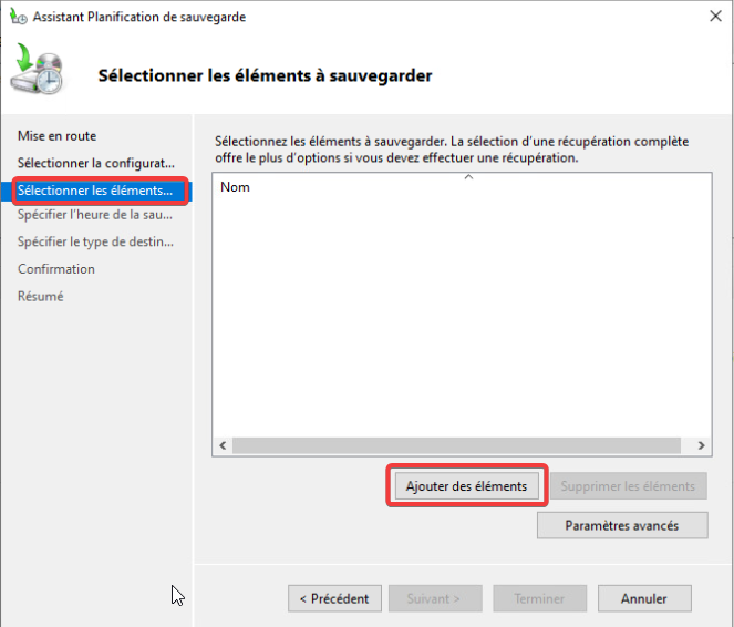 Cliquer sur Suivant puis cliquer sur "Ajouter des éléments";
