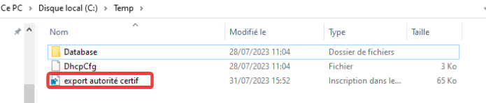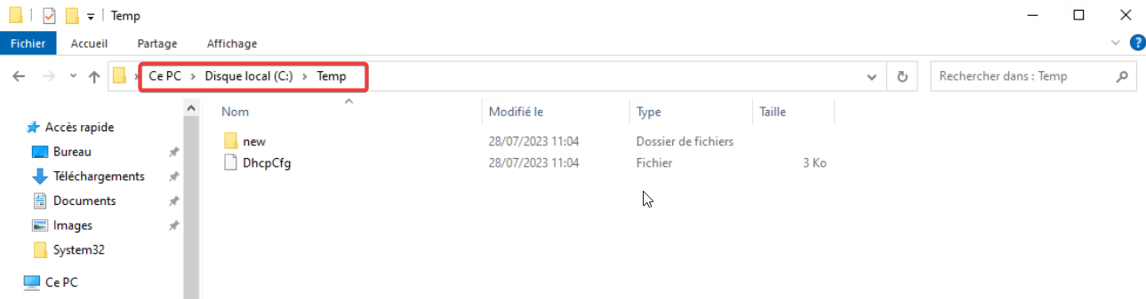 - Faire une sauvegarde de la configuration DHCP sur une destination externalisée au DHCP. Le fichier DhcpCfg est le fichier de configuration du DHCP.
