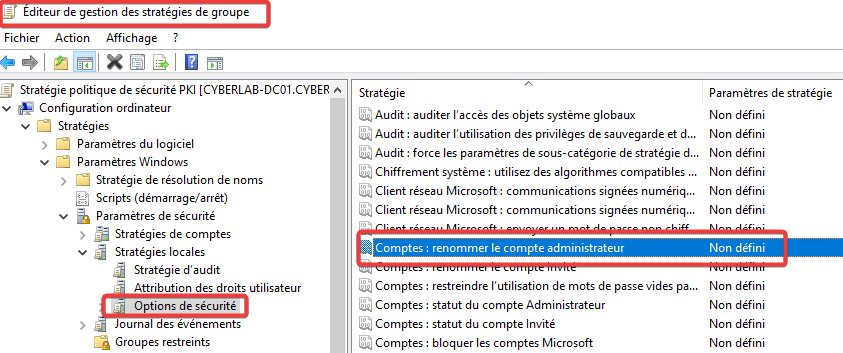 Les contrôleurs de domaine sont des serveurs cruciaux et il est essentiel de mettre en place une solide politique d'audit pour suivre les différentes modifications. Les stratégies d'audit par défaut ne sont pas suffisantes pour avoir une visibilité (meilleure) dans le suivi des comportements potentiellement malveillants.