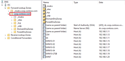 Ouvrir le Gestionnaire DNS pour trouver les zones de recherches directes;