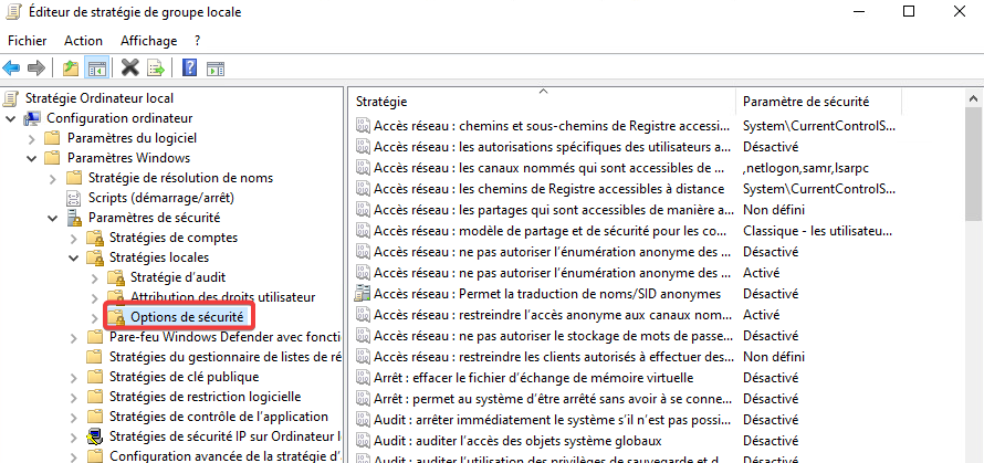 | Accès aux objets | Auditer le partage de fichiers détaillé | Echec |