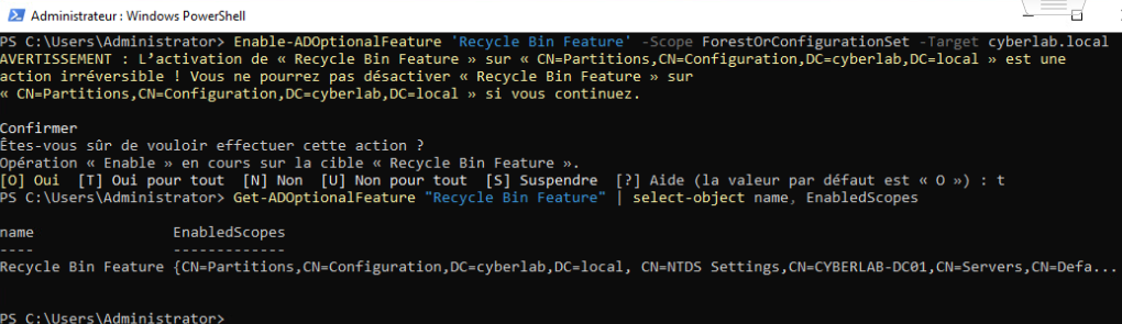 - S'assurer d'avoir un plan de restauration en place pour restaurer Active Directory en cas de besoin (à mettre en place selon la taille de l'entreprise)