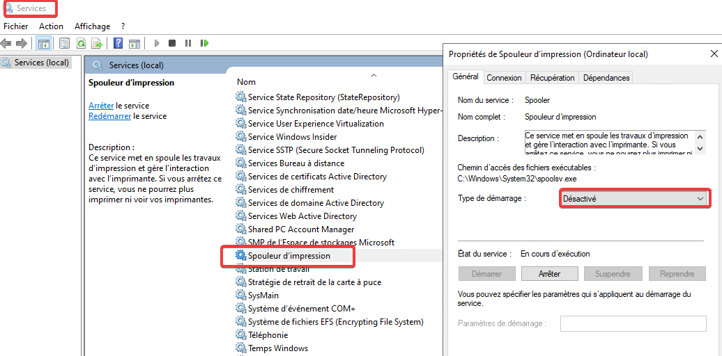 - Désactiver les services non nécessaires sur sur Contrôleur de Domaine;