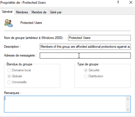 Si vous avez des membres dans ces groupes mentionnés, il est recommandé de trouver un moyen de les garder vides. Il est impossible de renommer, déplacer ou supprimer ces groupes.