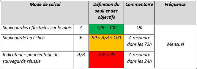 - Des seuils de tolérance déclenchés par rapport aux objectifs fixés.